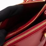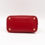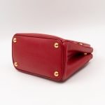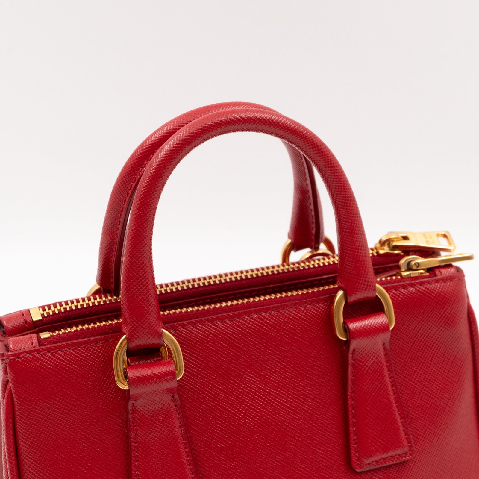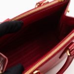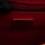 A cute micro sized edition Prada Galleria Micro Double Zip bag. Made with Saffiano leather in orange, combined with gold-tone hardware. This miniature Galleria fits your phone, and wallet, with other small items. Each side has zipper pockets, the middle compartment expands to a more spacious size. Current retail price over €3200.