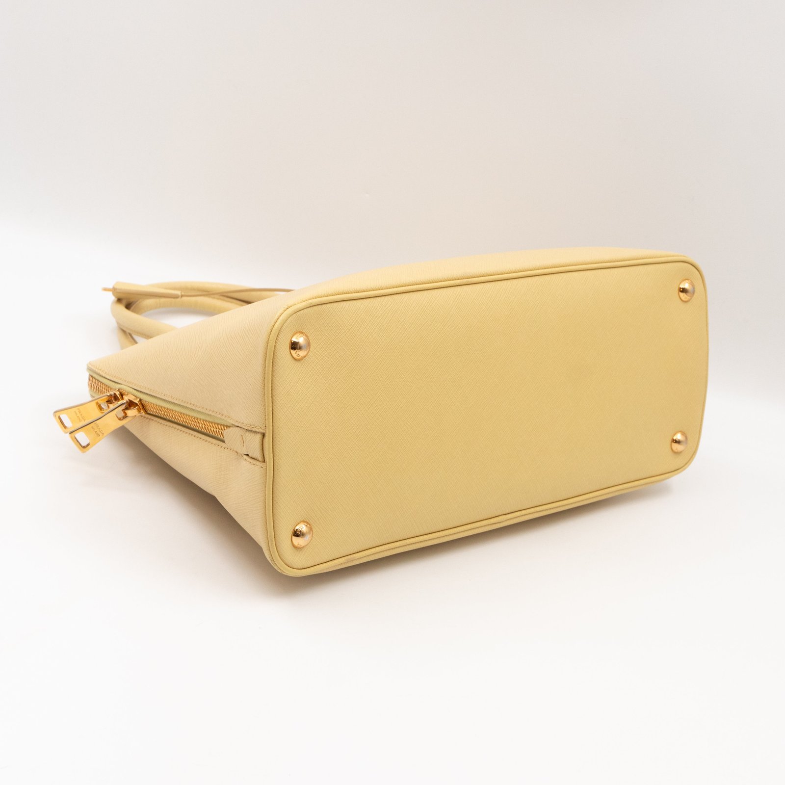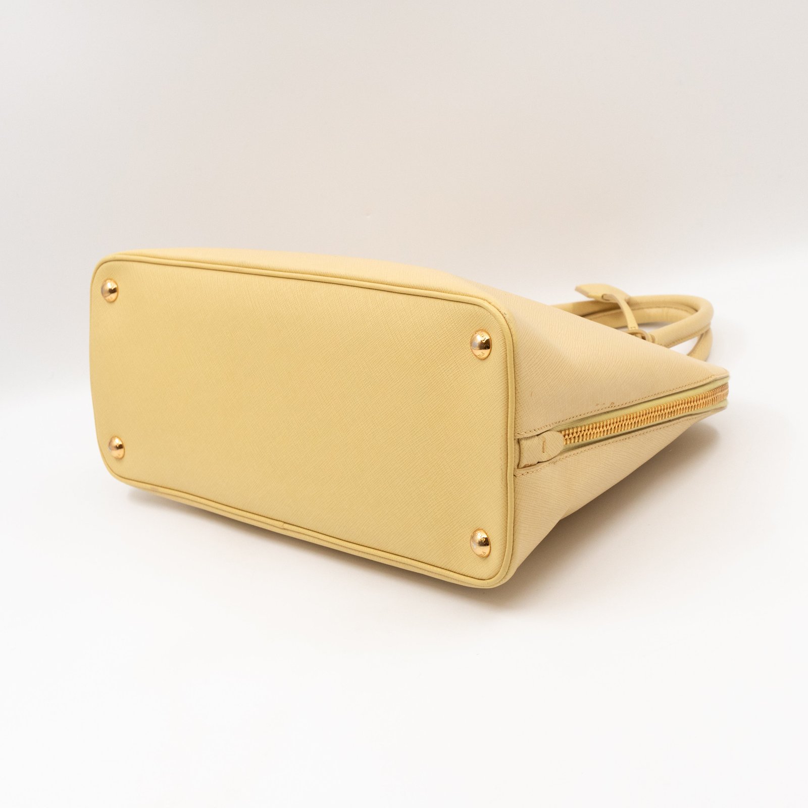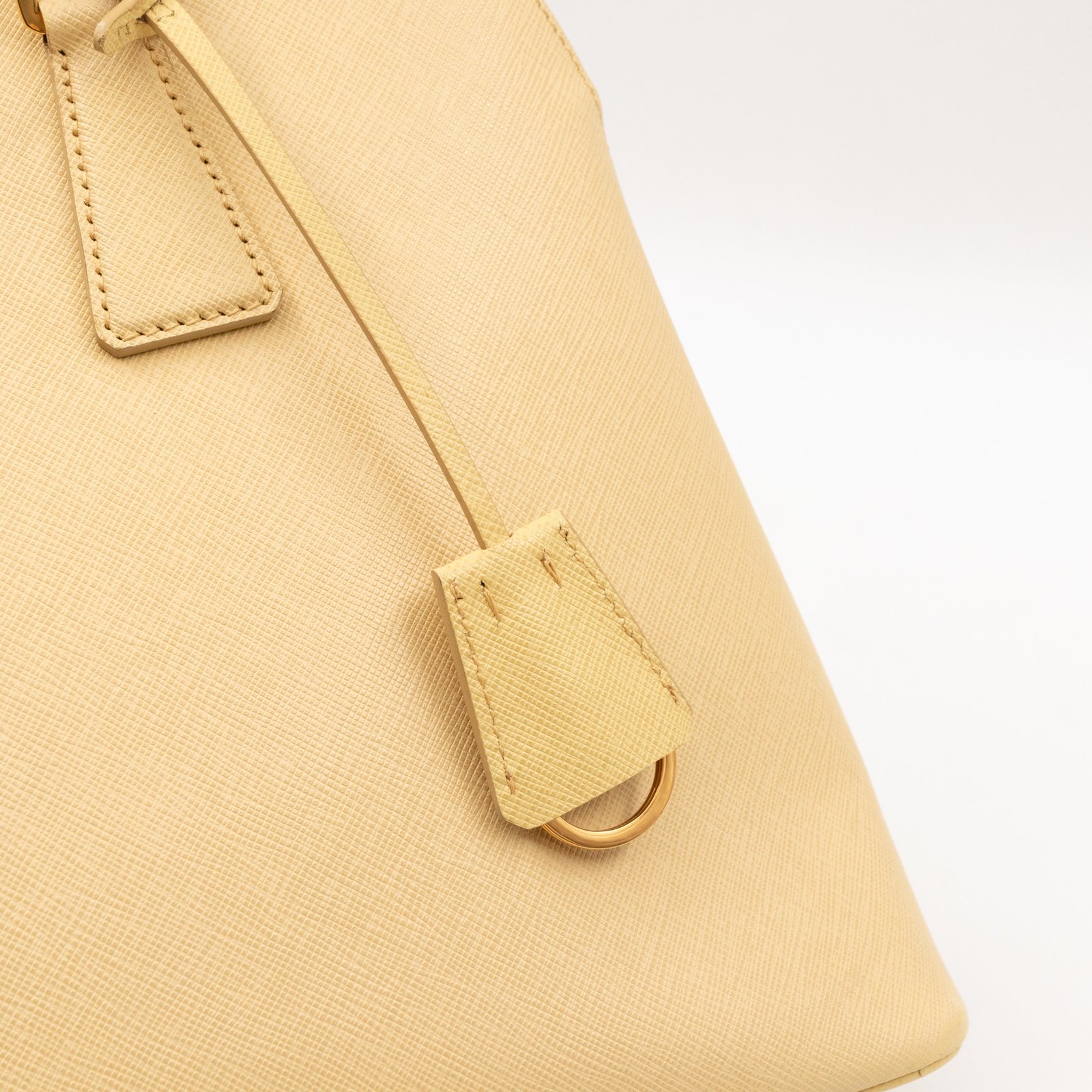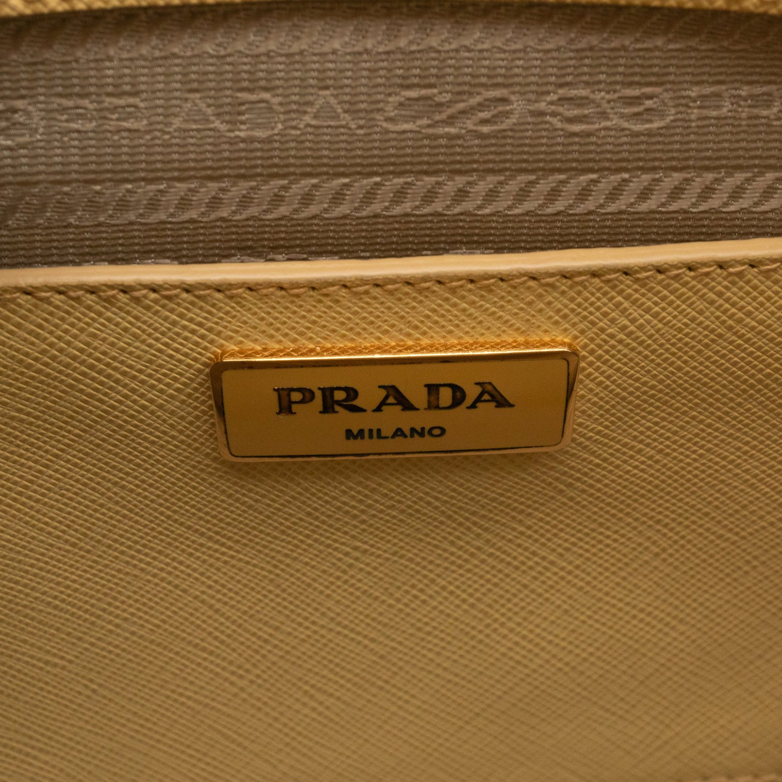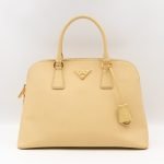 A cute large sized edition Prada Promenade crossbody bag. Made with saffiano leather in yellow, combined with gold-tone hardware. This Promenade fits all your daily items. Open to two compartments and two slim pocket.