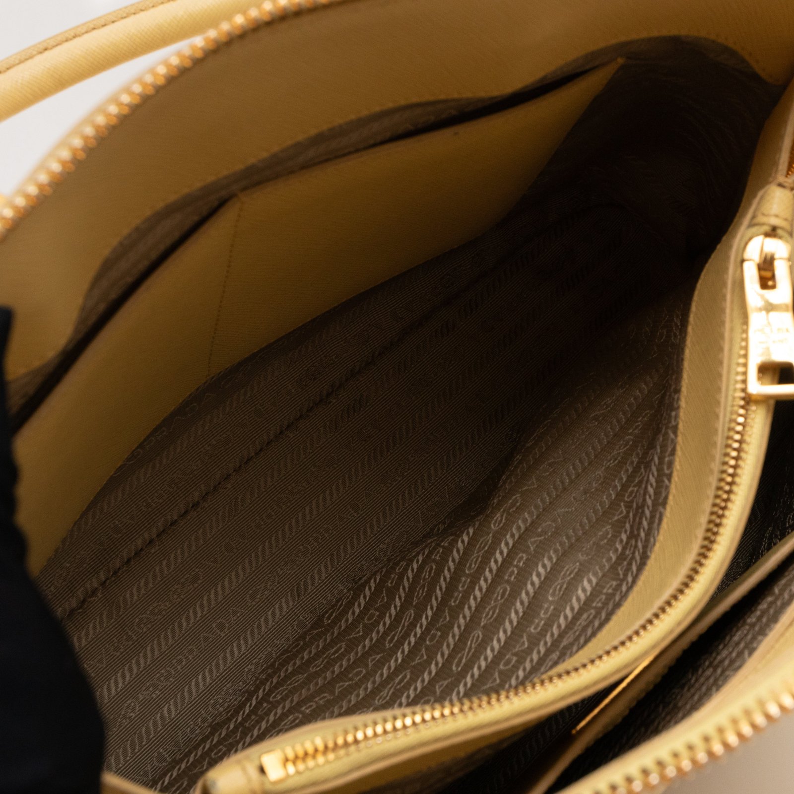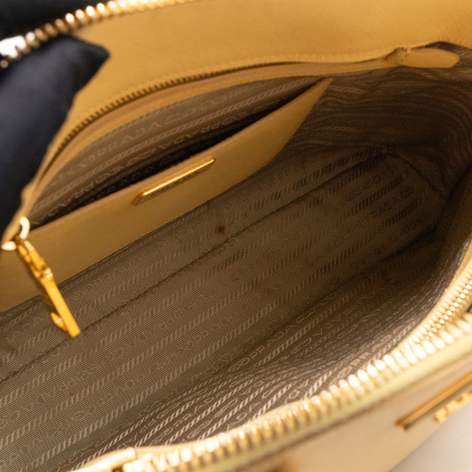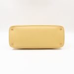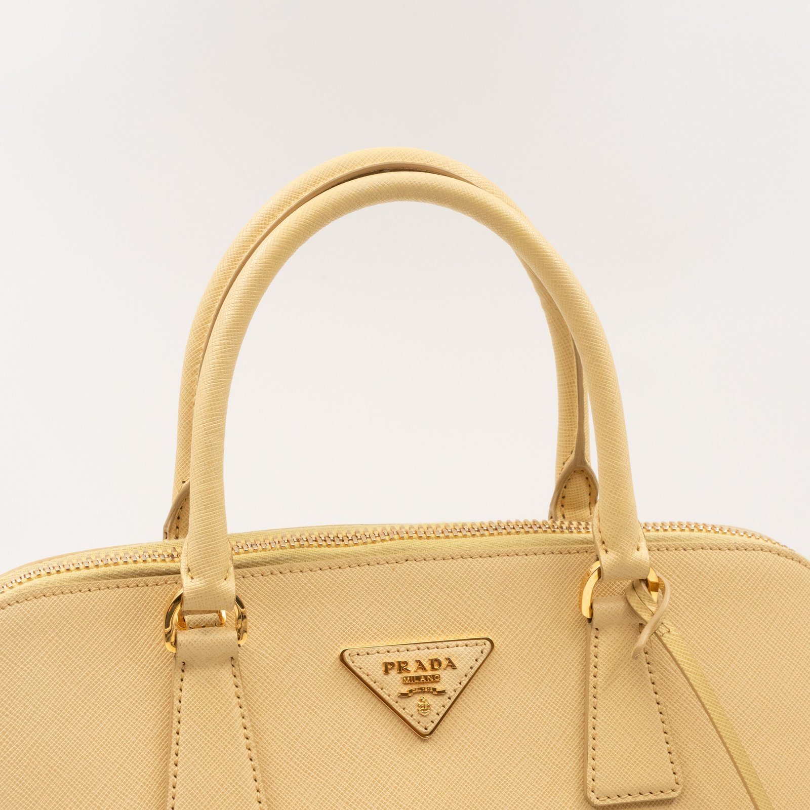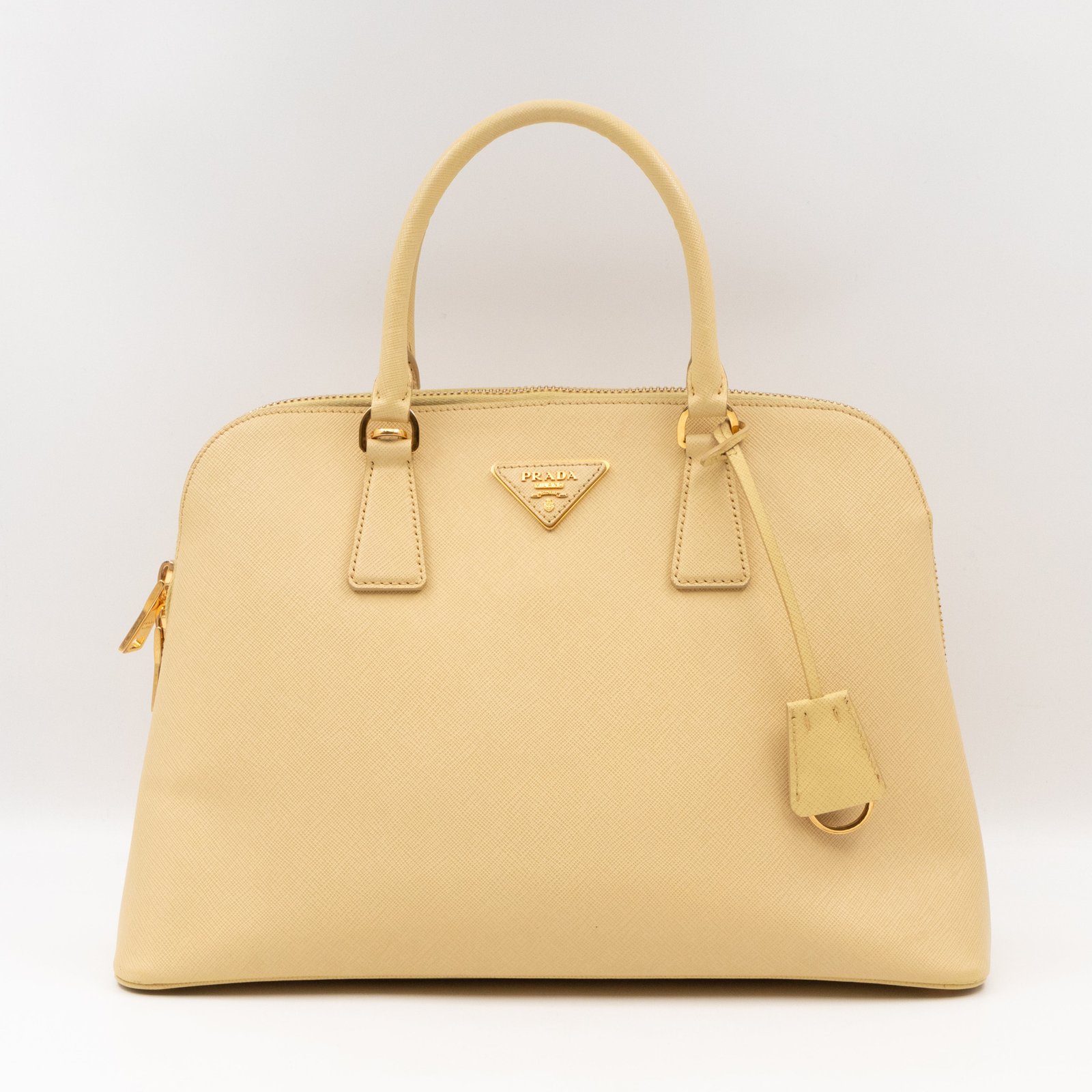 A cute large sized edition Prada Promenade crossbody bag. Made with saffiano leather in yellow, combined with gold-tone hardware. This Promenade fits all your daily items. Open to two compartments and two slim pocket.