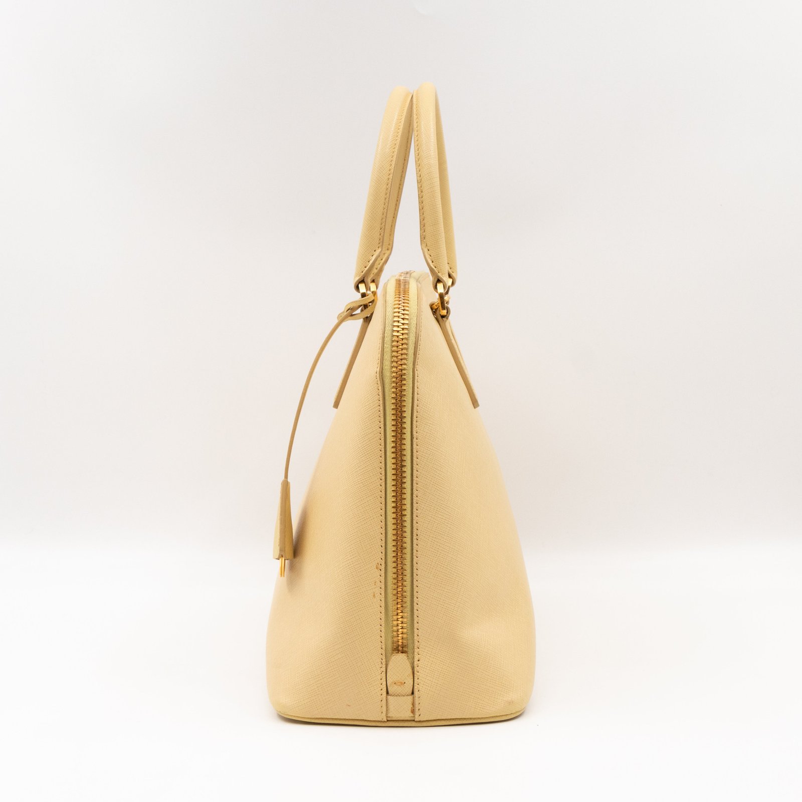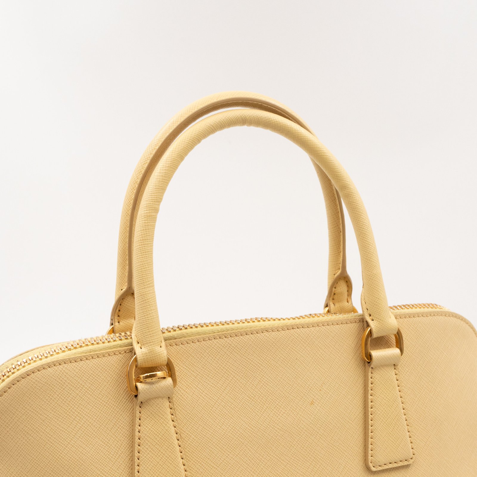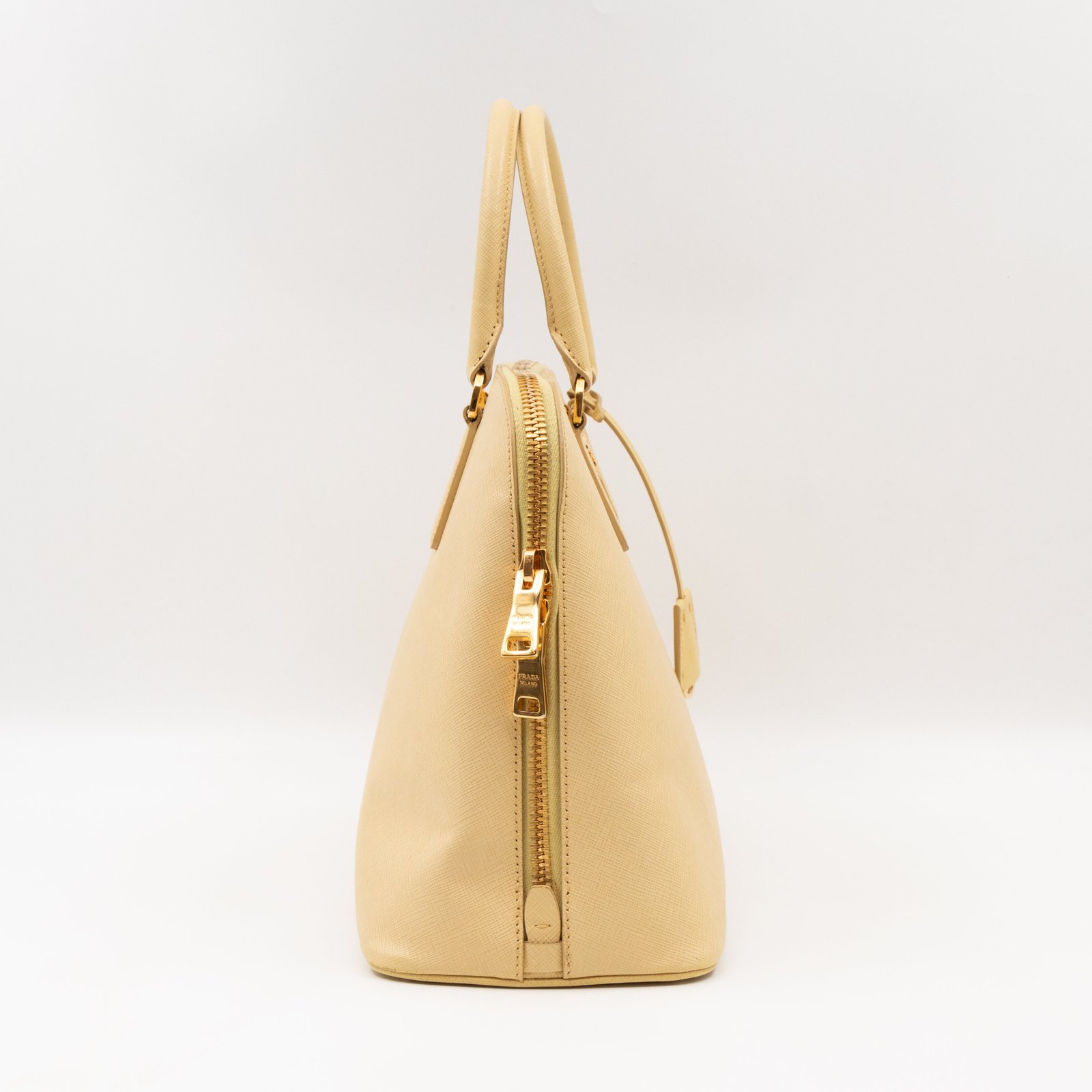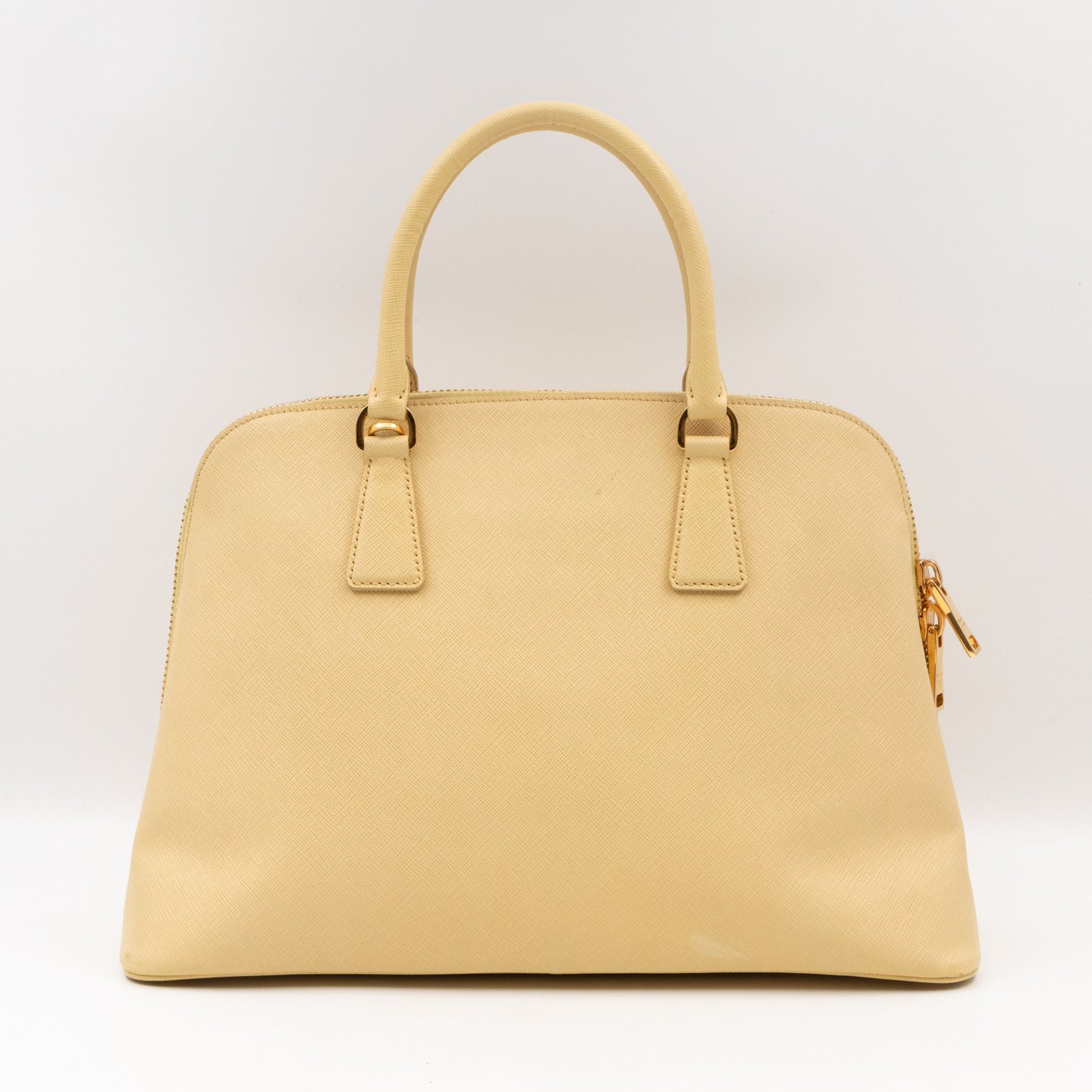 A cute large sized edition Prada Promenade crossbody bag. Made with saffiano leather in yellow, combined with gold-tone hardware. This Promenade fits all your daily items. Open to two compartments and two slim pocket.