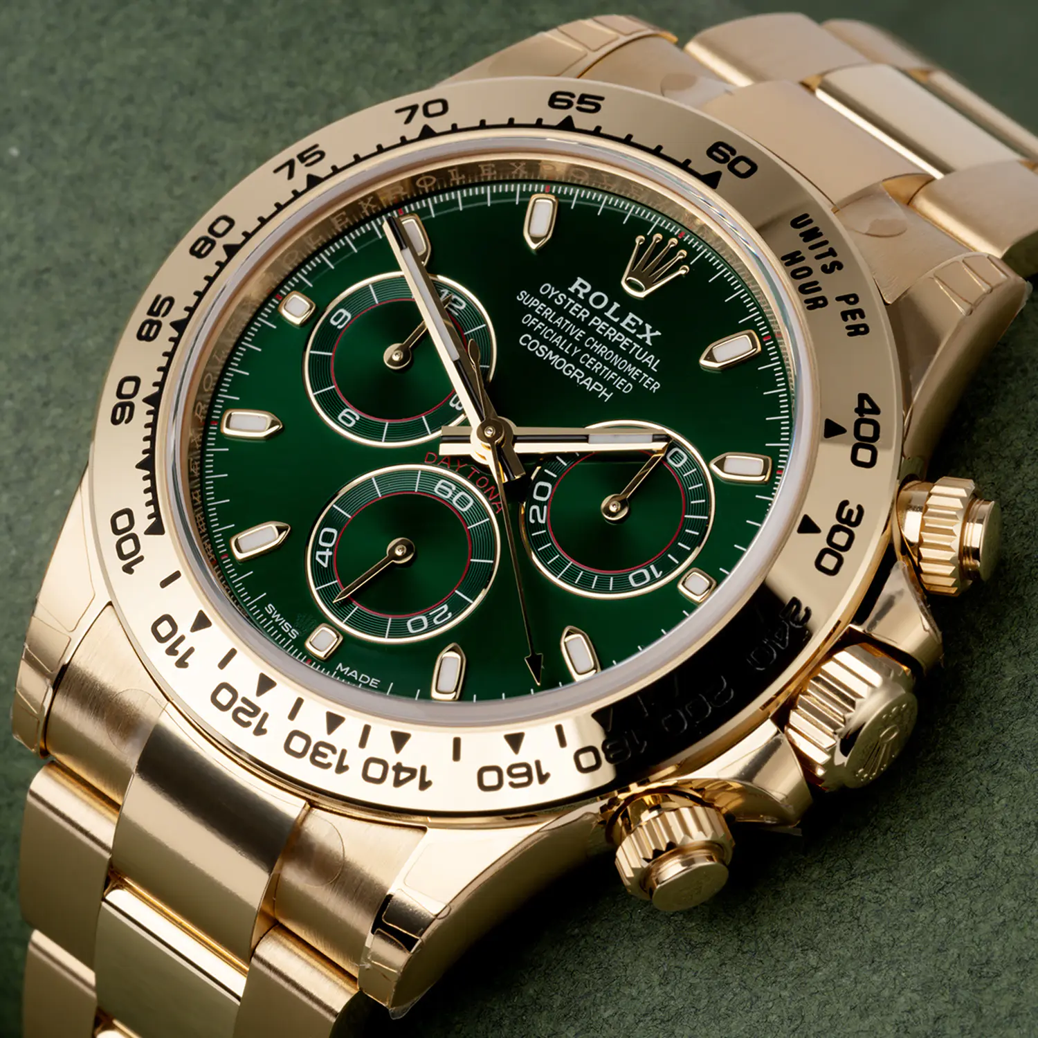 This scale offers optimal legibility, making the Cosmograph Daytona the ideal instrument for measuring speeds up to 400 units per hour, expressed in kilometres or miles.Â
