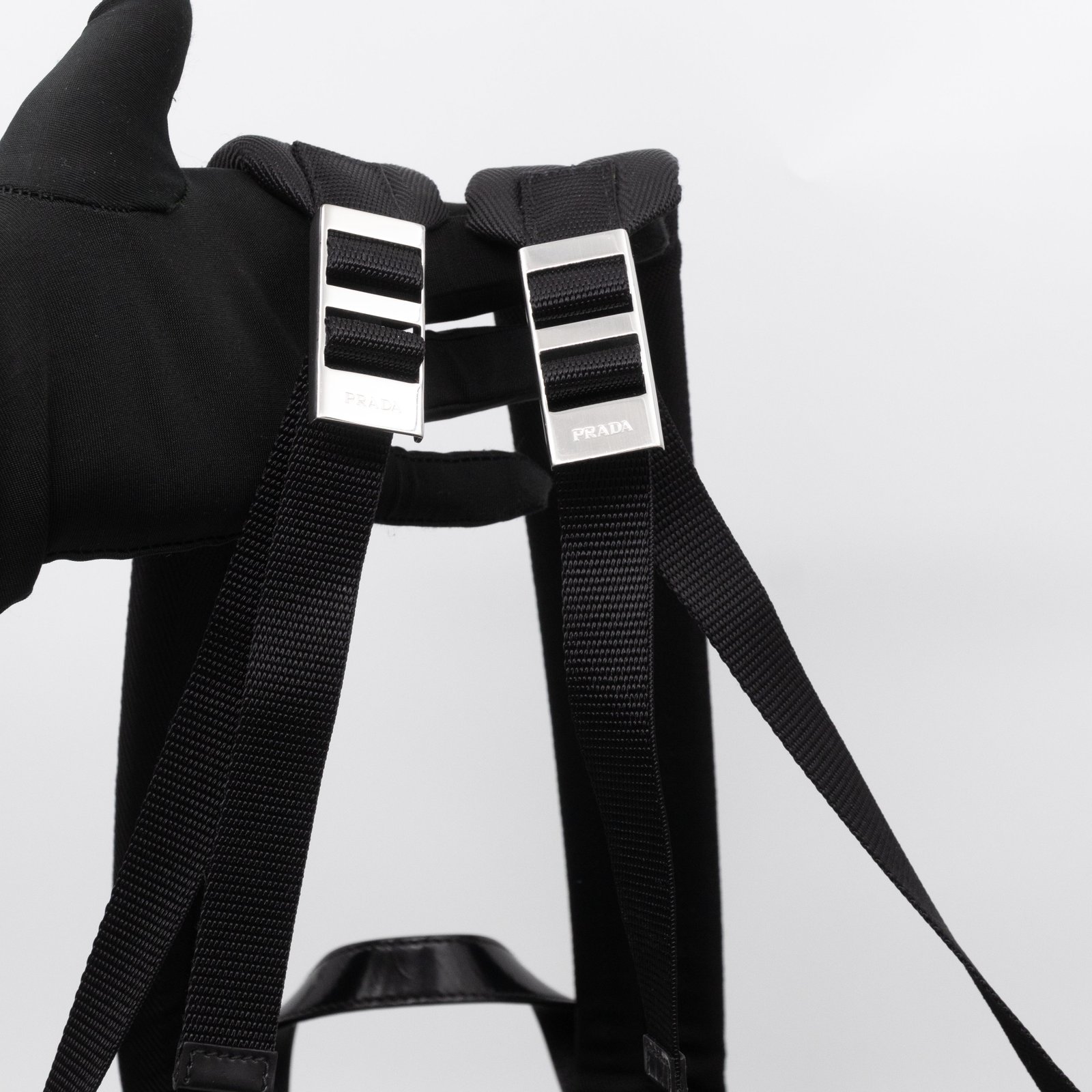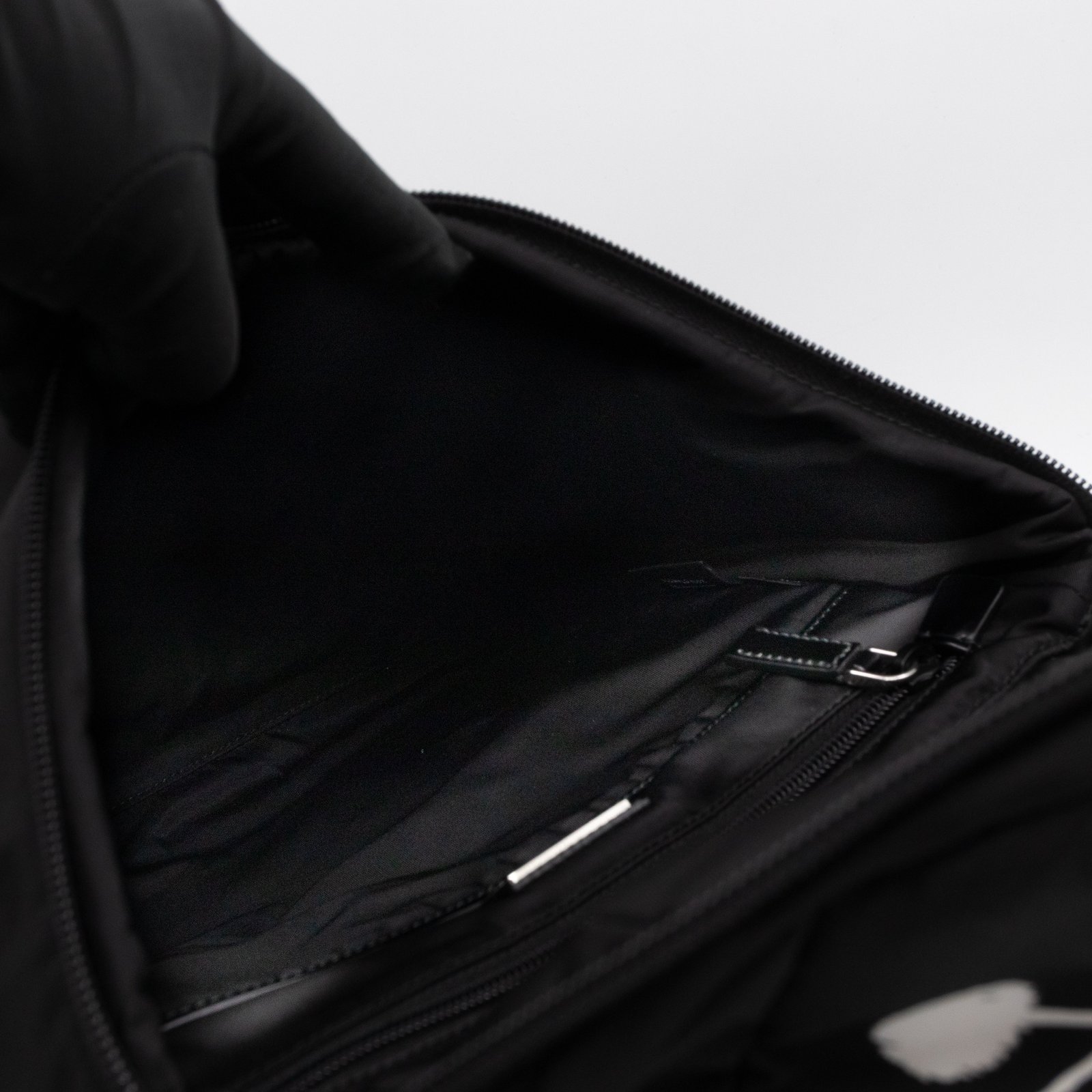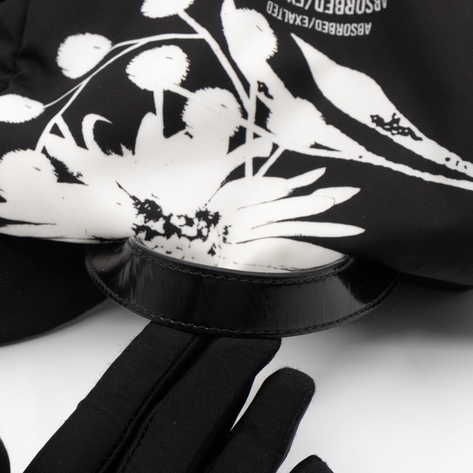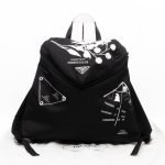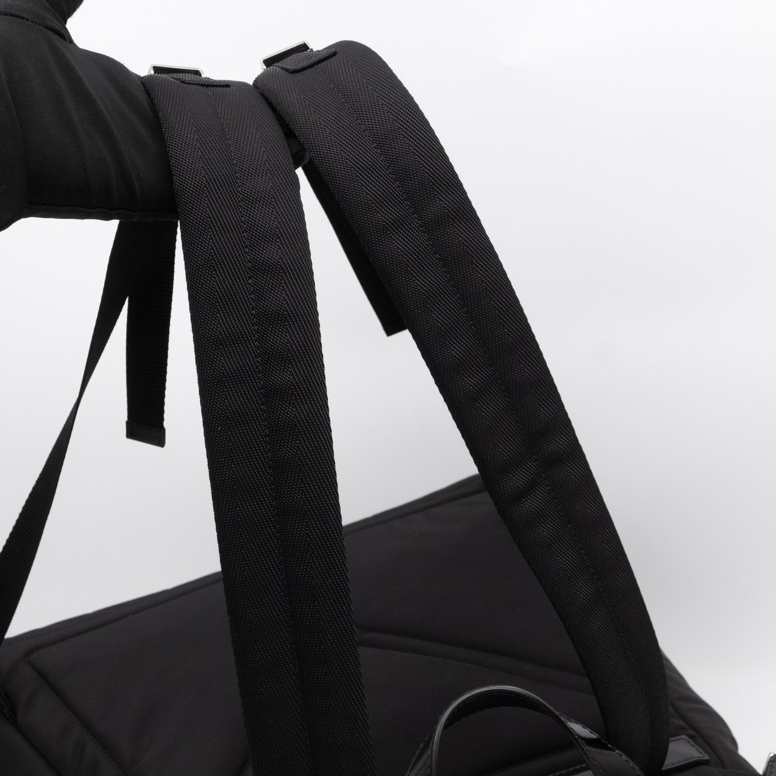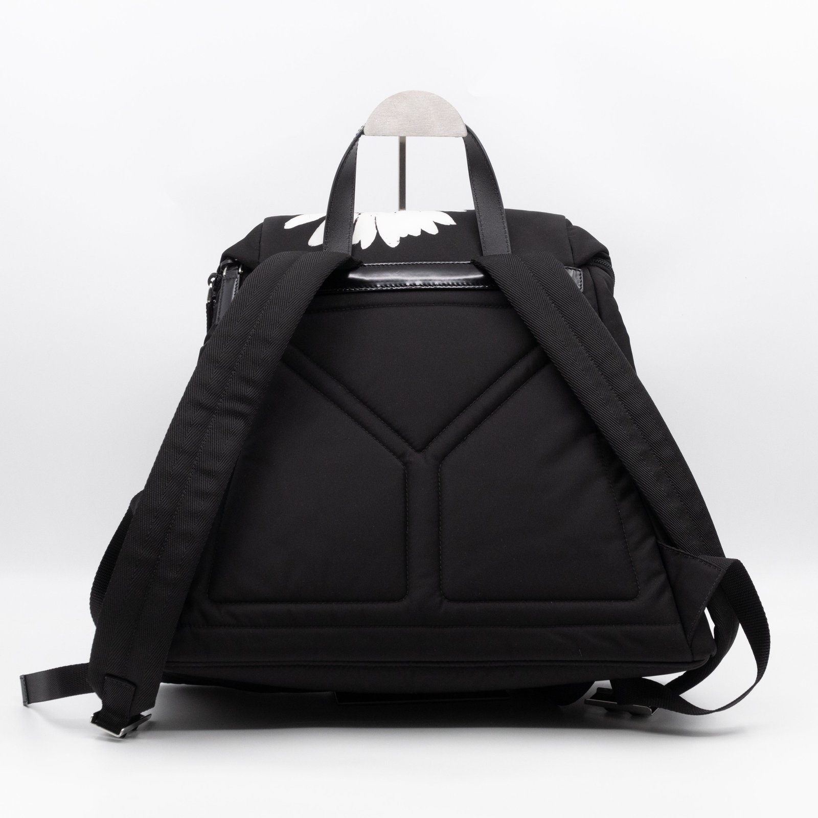 Iconic black nylon backpack in the spring/summer 2021 collection from Prada. Made in black nylon with black leather trims and silver-tone hardware. They are born by the collaboration between the iconic Italian brand and Peter de Potter, a famous Belgian artist. The quilted straps are foam-backed for a comfortable carry. The backpack features a zipper closure, a front flap with the iconic triangle logo and two internal pockets, one with zipper. Comfortable and very practical, great choice for daily use. Retail price is around €1600.