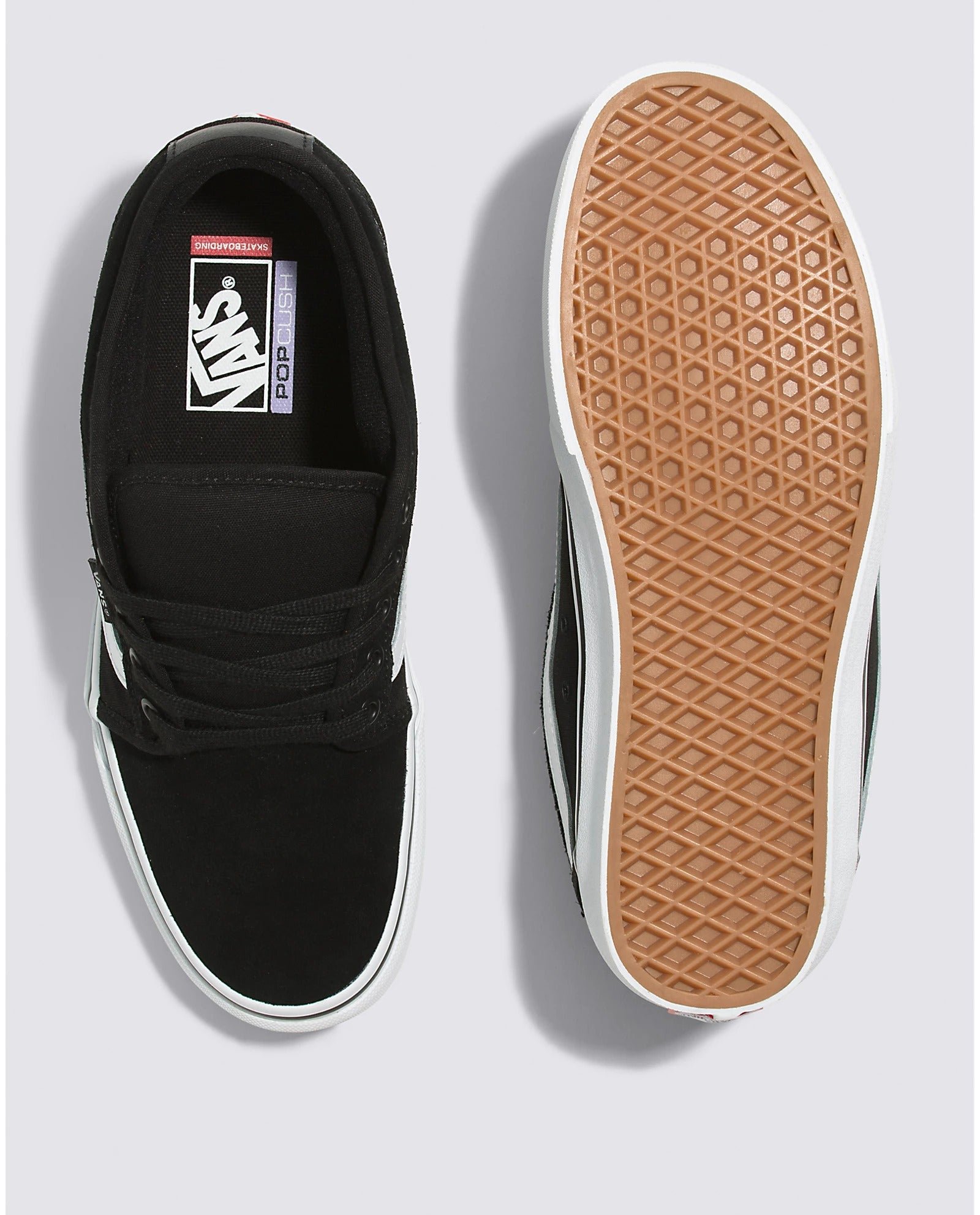 The Skate Chukka Low, designed by the Vans skate team and inspired by classics like the Authentic and the Chukka Boot, blends classic suede and canvas uppers with the best in boardfeel, flex, and traction.Â
